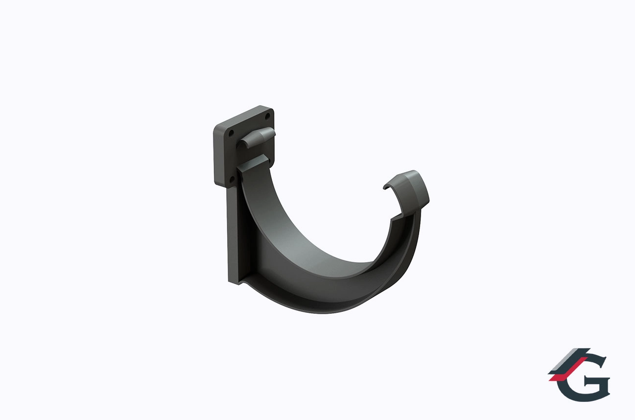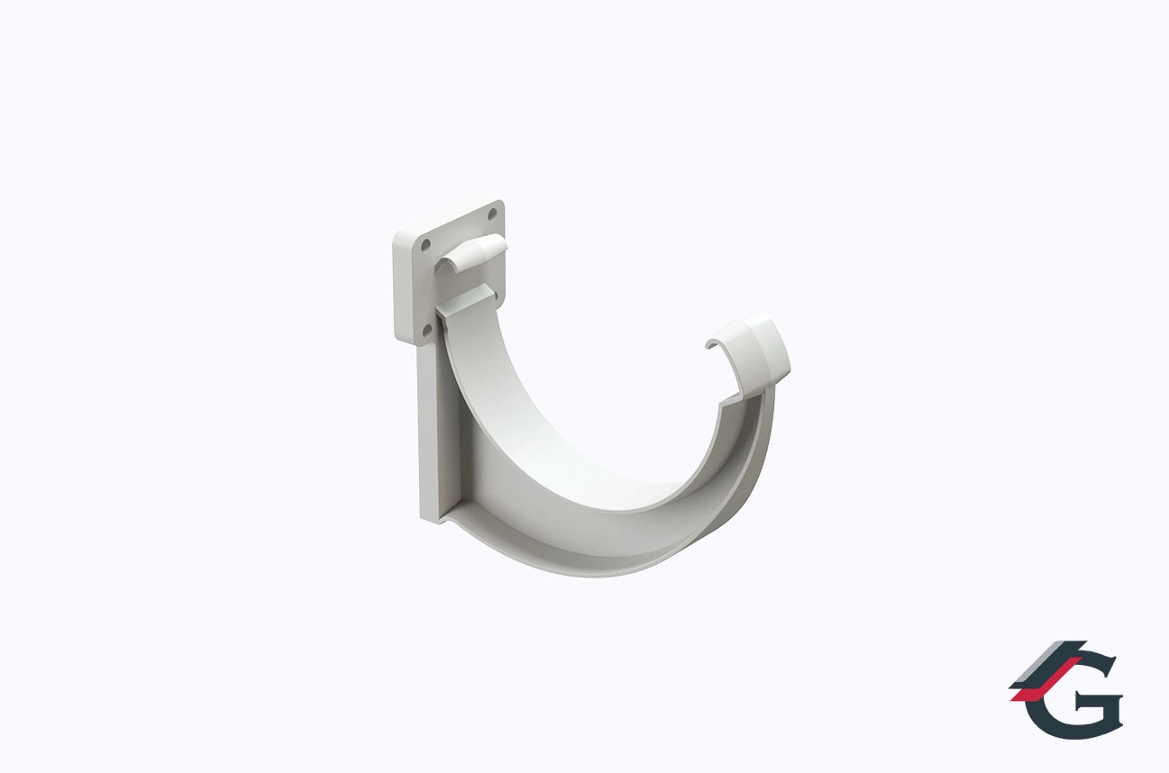 Пластиковый кронштейн желоба — компонент ПВХ-водостока, выполняющий функции держателя желобов. Он подходит для закрепления желоба на лобовой доске, а также для фиксации желоба к стропильной системе, обрешетке, сплошному основанию с дополнительным использованием регулируемого крепления Дёке.