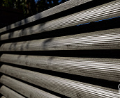 Забор-жалюзи NORDO® Round — решение с уникальным дизайном и оптическими показателями. Забор-жалюзи состоит из ламелей полукруглой формы. Они установлены таким образом, что изнутри вы получаете полный обзор уличной территории, но с улицы для прохожих ваш забор остается полностью закрытым.