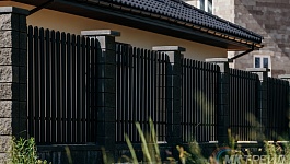 В Колодищах радует глаз хозяев и прохожих наш металлический штакетник Трапеция-усиленный с двухсторонним заполнением в надёжном матовом покрытии черного цвета.