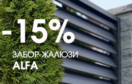 акция распространяется на забора-жалюзи Alfa из оцинкованной стали с полимерным покрытием во всех цветах и покрытиях