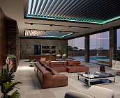 Подвижные ламели системы LARGO Bioclimatic — конструктивное решение, обеспечивающее стабильно высокую освещенность террас и беседок, отличающееся простотой управления, лаконичным и современным дизайном.