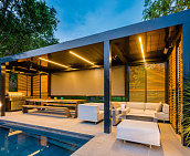 LARGO Viento — это автоматическая экранная система, которая эффективно защищает от ветра, ультрафиолета и насекомых, обеспечивает дополнительную приватность и позволяет регулировать уровень естественного освещения.