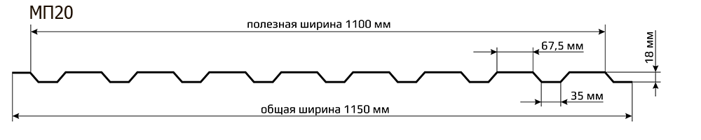 При обустройстве заборов наибольшее распространение получил профнастил МП20 (высота волны 18 мм).