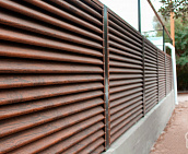 NORDO® Alfa — металлический забор-жалюзи с уникальными S-образными ламелями. S-образный профиль и расположение ламелей под углом: