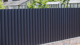 Практичный забор из профнастила (профлиста) МП20 в а/г. Ратомка с матовым покрытием тёмно-серого цвета RAL 7024 (Серый Графит).