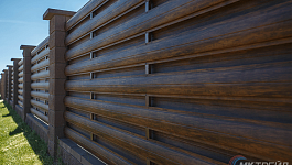 Штакетник металлический Европланка горизонт., Тёмное дерево - Объекты ООО «МКтрейд»