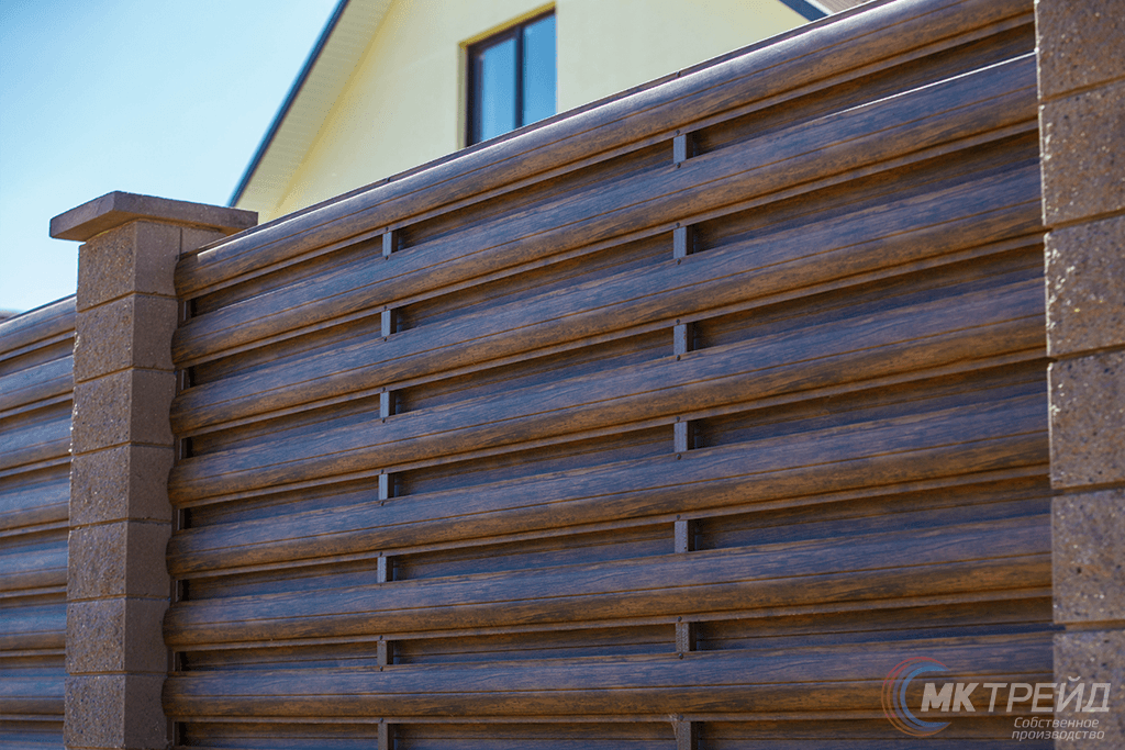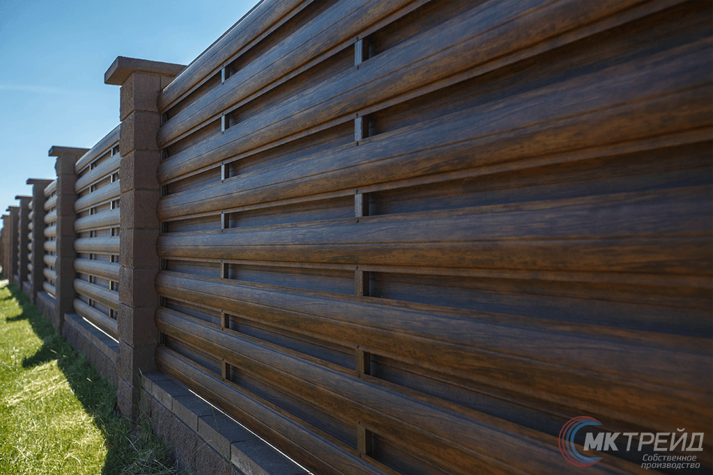 Штакетник металлический Европланка горизонт., Тёмное дерево - Объекты ООО «МКтрейд»