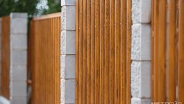В а/г. Ратомка не возможно не заметить забор из нашего металлического штакетника Европланка из южнокорейского премиум-металла "под светлое дерево" (Золотой дуб) с гарантией 30 лет.