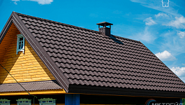 Роскошная крыша в Дзержинском районе из нашей новой эксклюзивной металлочерепицы Нордо с высокой волной, из металла с особо стойким кварцевым кристаллическим текстурным покрытием придает дому неповторимый вид.